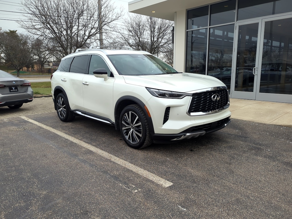 CARFAX One-Owner Clean CARFAX Experience luxury and versatility with this White 2022 INFINITI QX60 AWD Sensory SUV. Enjoy all-weather capability paired with a refined 3.5L V6 engine and smooth 9-speed automatic transmission. The spacious cabin is beautifully appointed with leatherette upholstery, wood interior accents, and a panoramic moonroof. Technology abounds with a 12.3-inch infotainment screen, Bose premium audio with 17 speakers, wireless Apple CarPlay and Android Auto, and a surround view camera system. Stay safe with advanced driver assistance features like lane keeping assist with blind spot integration, adaptive cruise control with stop & go, front and rear automatic emergency braking, and rear cross traffic alert. Comfort is paramount with heated and ventilated front seats, heated steering wheel, tri-zone automatic climate control, power-folding third row, and a sensor-activated power liftgate. Perfect for families or those seeking upscale utility, this QX60 Sensory delivers sophistication and peace of mind. Here at Voss BMW our primary concern is the satisfaction of you, our customer. The key to your satisfaction is our continued Commitment to Excellence. We work as a team to accomplish that goal. It cannot be assumed, mandated or demanded. It is taught by principle, example, vision, and leadership. Our goal is to not only exceed in sales and service, but to stand out from every other automotive dealership in results, professionalism, quality, service and commitment to excellence in all that we do.